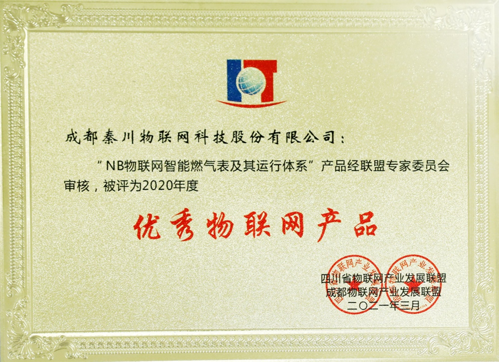 秦川物联网产品“NB物联网智能燃气表及其运行体系”被评为“2020年度优秀物联网产品”
